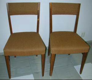 About MuseumFinland![]() | Materiaali: koivu, vaneri Valmistusaika: 1945-1955 Valmistustekniikka: teollinen Käyttäjä: Aino Raita, Torsten Raita Käyttöpaikka: Munkkiniemi,Helsinki,Suomi Asiasana: ISTUIN, KALUSTO Mitat: Korkeus:15,5cm(korkeus), Korkeus:42,5cm(takaa), Korkeus:45,5cm(istuinosan k. edestä), Korkeus:83cm(kokonaiskorkeus), Leveys:2cm(alhaalta), Leveys:37cm(takaa), Leveys:4,5cm(etujalat le. ylhäältä), Leveys:41,5cm(selkätuen le. karmeineen), Leveys:45,5cm(le. edestä), Syvyys:45cm(syvyys) Museokokoelma: Museokokoelma Vastuumuseo: Espoon kaupunginmuseo Asiasanasto: Espoon kaupunginmuseon sanasto Esineen numero: ECM:2242:2 ID: 22422 Sivusta katsottuna tuolin selkänoja kallistuu hieman taaksepäin. Etujalkojen sivu- ja etureuna on pyöristetty. Etu- ja takasarja on hieman kaareva. Sivuilla on välisarjat. Istuinlevy levenee etureunastaan. Jalat jatkuvat selkänojan sivutolppina, joiden välissä on hieman kaareva hartialauta. Hartialauta molemmilta puoliltaan ja istuinlevy sarjoja myöten on päällystetty vaaleanruskealla verhoilukankaalla, joka on kiinnitetty pienillä niiteillä. Verhoilun alta pilkistää edellinen vihreä verhoilukangas, joka on kiinnitetty verhoilunupeilla. Puuosat on petsattu ja lakattu. Muista tuoleista poiketen istuinmen vaneripohja on petsattu. Esinetyyppi: