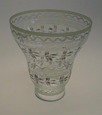 About MuseumFinland![]() | Valmistaja: Kauklahden lasitehdas Valmistuspaikka: Kauklahti,Espoo,Suomi,lasitehdas,Kauklahti,Espoo,Suomi Valmistusaika: 1940-1949 Valmistustekniikka: muottiin puhallettu Asiasana: KORISTE-ESINE, MAALAUSKORISTE Mitat: Halkaisija:24,5cm, Korkeus:27,5cm Museokokoelma: Museokokoelma Vastuumuseo: Espoon kaupunginmuseo Asiasanasto: Espoon kaupunginmuseon sanasto Esineen numero: ECM:3592:1 ID: 35921 Iso kokoinen, pyöreä pohjainen, ylöspäin kaarreillen levenevä. Koristemaalaus aaltoilevia ja suoria valkoisia viivoja vaakasuunnassa ja vaalean lilan värisiä kukkakuvioita kahdessa rivissä. Itse lasimassa huonolaatuista, epätasaista, paljon ilmakuplia. Esinetyyppi: