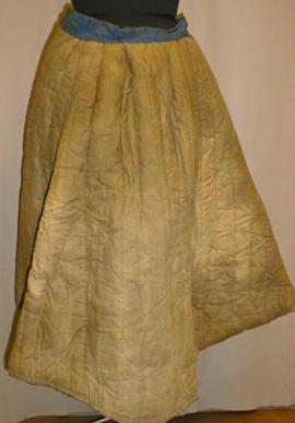 About MuseumFinland![]() ![]() | Materiaali: villa, puuvilla Valmistuspaikka: Suomi Valmistusaika: 1870-1920 Valmistustekniikka: käsin ja käsin koneella Mitat: Pituus:219cm(helman pituus), Pituus:70-74cm(pituus), Ympärysmitta:70cm(vyötärö) Museokokoelma: Museokokoelma Vastuumuseo: Espoon kaupunginmuseo Asiasanasto: Espoon kaupunginmuseon sanasto Esineen numero: ECM:3594:18 ID: 359418 Sininen vyötäröhame, jonka vuori on tikattua beigeä puuvillakangasta. Vyötärökaitale on vaaleata karkeahkoa villakangasta, palttinasidos. Kiinnitys hakasella ja kahden napin (päällystettyjä) halkiolla. Hame on karkeahkoa tumman sinistä villakangasta. Hame on ommeltu yhteen kolmesta suorakaiteen muotoisesta palasta sekä kahdesta isosta ja kahdesta pienestä kiilakappaleesta. Osa kankaasta on poimutettu vyötärönauhaan tikatun vuorikankaan kera. Helmassa on koneommel kaikkien kankaiden läpi ommeltuna.Hame on ilmeisesti ollut ripustettuna kahdella nastalla vyötärökaitaleesta, mistä on jäljellä ruosteiset pyöreät jäljet. Hakanen on ruosteessa. Esinetyyppi: