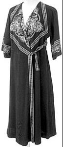 About MuseumFinland![]() | Materiaali: jersey,puuvilla Valmistaja: Ateljé Senni Lindfors Valmistuspaikka: Keski-Lahti, Lahti, Hämeenlääni, Päijät-Häme, Suomi Valmistusaika: 1977 Käyttäjä: Senni Lindfors Käyttöpaikka: Lahti, Hämeenlääni, Päijät-Häme, Suomi Asiasana: NAISEN VAATTEET Mitat: pituus 108cm, rinnan ympärys 90cm Museokokoelma: LAHDEN HISTORIALLINEN MUSEO Vastuumuseo: LAHDEN KAUPUNGINMUSEO Asiasanasto: Lahden kaupunginmuseon sanasto Esineen numero: LKM:LHM:LHM:ES:94108:191 ID: 94108191 Vyötärösaumallinen vartaloa myötäilevä komonohihallinen puku. Selkäpuolella kolmion muotoinen koristekuvio. Pääntie V-mallinen, edustassa molemmin puolin koristekuvio, samoin hihansuissa. Edestä avoin , etukappaleet päällekkäin, kiinnittiminä haka ja solmittava koristenauha. Hameen etureuna kantattu koristenauhalla. Esinetyyppi: