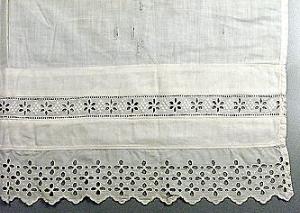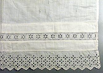 About MuseumFinland![]() | Materiaali: puuvilla Valmistaja: Senni Lindfors Valmistuspaikka: Lahti, Hämeen lääni, Päijät-Häme, Suomi Valmistusaika: 1948 Valmistustekniikka: käsityö Käyttäjä: Paula Lindfors Käyttöpaikka: Lahti, Hämeen lääni, Päijät-Häme, Suomi Asiasana: VUODEVAATE Mitat: pituus 82cm, leveys 60cm Museokokoelma: LAHDEN HISTORIALLINEN MUSEO Vastuumuseo: LAHDEN KAUPUNGINMUSEO Asiasanasto: Lahden kaupunginmuseon sanasto Esineen numero: LKM:LHM:LHM:ES:94108:255 ID: 94108255 Suorakaiteen muotoinen lakana, jossa toisessa kapeassa päädyssä leveähkö brodyyripitsi ja kapea välipitsi. Muissa reunoissa kapea päärme. Esinetyyppi: