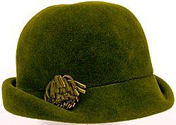 About MuseumFinland![]() | Materiaali: nukkapintainen villahuopa Valmistaja: Muotiliike LiLa Valmistuspaikka: Lahti, Hämeen lääni, Päijät-Häme, Suomi Valmistusaika: 1960-l.ap Valmistustekniikka: modistin valmistama, vuoriton Käyttäjä: Anna-Liisa Aarti, Martta Aarti Käyttöpaikka: Lahti, Hämeen lääni, Päijät-Häme, Suomi Asiasana: NAISEN ASUSTEET Mitat: koko 56 Museokokoelma: LAHDEN HISTORIALLINEN MUSEO Vastuumuseo: LAHDEN KAUPUNGINMUSEO Asiasanasto: Lahden kaupunginmuseon sanasto Esineen numero: LKM:LHM:LHM:ES:96065:46 ID: 9606546 Huopahattu, jossa lieri edestä ja toiselta sivulta suora, takaa ja toiselta sivulta nostettu ylös. Lierin reuna käännetty sisäpuolelle. Hikinauhana ripsinauha. Esinetyyppi: