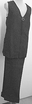 About MuseumFinland![]() | Materiaali: takki: 65% villa, 35% polyesteri, liivi: 65% villa, 35% polyesteri, housut: 65% villa, 35% polyesteri Valmistaja: Kestilän Pukimo Oy Valmistuspaikka: Turku, Turun ja Porin lääni, Varsinais-Suomi, Suomi Valmistusaika: 1990-luku Käyttäjä: Kalevi Virta Käyttöpaikka: Lahti, Hämeen lääni, Päijät-Häme, Suomi Asiasana: MIEHEN VAATTEET Mitat: koko 54 C Museokokoelma: LAHDEN HISTORIALLINEN MUSEO Vastuumuseo: LAHDEN KAUPUNGINMUSEO Asiasanasto: Lahden kaupunginmuseon sanasto Esineen numero: LKM:LHM:LHM:ES:97070:102 ID: 97070102 Takki: lantiolle ulottuva puvun takki, jossa keskellä takana halkio. Istutetut hihat, hihansuissa kolme nappia. Vasemmalla puolen rintatasku, helmassa läpälliset upotetut taskut. Kiinnitys kahdella napilla. Vuorissa molemmin puolin upotetut povitaskut.. Liivi: vyötärölle ulottuva puvun liivi, jossa molemmin puolin upotetut taskut ja edessä napitus Housut: suoralahkeiset puvun housut, joissa viistotut taskunsuut. Oikealla upotettu takatasku, siinä nappilenkki. Edestäpuoleensääreen vuoritettu. Esinetyyppi: