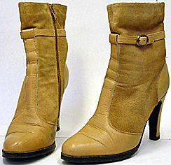About MuseumFinland![]() | Materiaali: nahka, mokkanahka, kumi, trikooneulos, muovivetoketju Valmistaja: Kenkätehdas Pasi Tawast Oy Valmistuspaikka: Suomi Valmistusaika: 1960-luku Käyttäjä: Senni indfors Käyttöpaikka: Lahti, Hämeen lääni, Päijät-Häme, Suomi Asiasana: JALKINEET, NAISEN TALVIJALKINEET Mitat: koko 2 1/2, korko: korkeus 9cm, varsi: korkeus 14cm Museokokoelma: LAHDEN HISTORIALLINEN MUSEO Vastuumuseo: LAHDEN KAUPUNGINMUSEO Asiasanasto: Lahden kaupunginmuseon sanasto Esineen numero: LKM:LHM:LHM:ES:98021:141 ID: 98021141 Sirot ja korkeakorkoisen nilkkurit, joissa sisäsivulla vetoketju. Kärki pyöreähkö, kapeana kaitaleena keskiedessä jatkuvaa nahkaa. Sivut mokkanahkaa. Korko ja kantaosa nahkaa, samoin kapea nilkkaa kiertävä remmi, jossa ulkoreunassa solki. Tummanruskea kuviollinen vuori. Esinetyyppi: