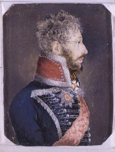 About MuseumFinland![]() | Materiaali: guassi? Valmistustekniikka: käsityö Asiasana: miniatyyrit, muotokuvat, sotilashenkilöstö, upseerit Mitat: korkeus:6cm, leveys:4,7cm Museokokoelma: Historialliset kokoelmat Vastuumuseo: Suomen kansallismuseo Asiasanasto: Museoalan asiasanasto, Yleinen suomalainen asiasanasto Esineen numero: NBA:H7244:1 ID: 15638 Rintakuva profiilissa --->, Beloruskijn husaarirykmentin sinisessä attilassa, jossa on punainen kaulus ja valkoiset nyörit ja kirjailut. Yrjönristi (1808) kaulassa, Stanislauksen ritarikunnan suuri nauha sekä Pyhän Annan (1807) ja Vladimirin (1807) kunniamerkit. Harmaa pörröinen tukka, ruskea parta. Ruskea tausta. Miniatyyri norsunluulle, 60 x 47 mm, kulmat viistetyt. Päällä lasi ilman kehyksiä. Sahviaanirasiassa. Esinetyyppi: