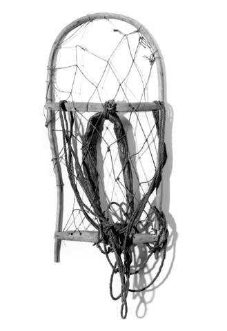 About MuseumFinland![]() | Materiaali: nahka;poro, puu;koivu Valmistustekniikka: käsityö Asiasana: kantovälineet, kesättivaljaat, rinkat, saamelaiset, suomalais-ugrilaiset kansat Mitat: korkeus:47cm, leveys:41cm, pituus:85cm Museokokoelma: Suomalais-ugrilaiset kokoelmat Vastuumuseo: Suomen kansallismuseo Asiasanasto: Museoalan asiasanasto Esineen numero: NBA:SU4904:175 ID: 73543 Rosnan ylösalaisin olevan U-kirjaimen muotoinen runko on valmistettu ohuesta koivusta. Sakarat on yhdistetty toisiinsa kahdella ulospäin kaarevalla poikkipienalla, jotka on liitetty runkoon pienin nauloin. Kehyksen sisään jäävä alue on varustettu hamppunyöristä kudotulla, harvalla verkolla. Ylempään poikkipienaan on kiinnitetty poron pehmustetut länget, ns. kesätti, jonka avulla kehys on kiinnitetty kantajan selkään. Kesätti on valmistettu päällystämällä poronnahalla suikale karkeaa villakangasta, mahd. vanhaa raanua. Rosnaan kuuluu lisäksi kuorman sidontanyöri eli kaariste, joka on valmistettu ostetusta hamppunyöristä. T.I. Itkosen luettelointitiedon mukaan rosnan runko on voitu joskus tehdä myös tuomesta ja verkkokudos vitsasta. Esinetyyppi: