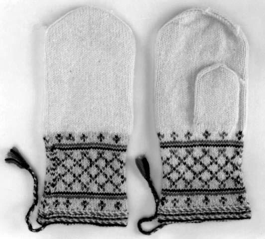 About MuseumFinland![]() | Materiaali: lanka;villa Valmistaja: Joffas (Eufrosimia) Feodoroff Valmistuspaikka: Sevettijärvi, Lappi Valmistusaika: 1987 Valmistustekniikka: käsityö Asiasana: kintaat, käsineet, pukineet, saamelaiset, suomalais-ugrilaiset kansat Mitat: leveys:11cm, pituus:27cm Museokokoelma: Suomalais-ugrilaiset kokoelmat Vastuumuseo: Suomen kansallismuseo Asiasanasto: Museoalan asiasanasto Esineen numero: NBA:SU5831:1 ID: 35333 Vanttuut, valkoista (valkaistua) villaa; suuosan valkoisessa villassa punertavanharmaa sävy. Keskeinen koristemalli perinteinen verkkoaihe, johon on lisätty riekonjalka-aihekoristelu. Väriskaala noudattaa periaatteessa Suonikylän perinnettä. Siinä on päivastoin kuin Petsamon ja Paatsjoen siitojen malleissa keltaista. Sen sijaan vanhan perinteen mukaan tulisi olla sinistä. Koristellun osan korkeus 11 cm. Vanttuissa 15 cm pitkät punaisesta, mustasta ja valkoisesta (koriste- ja peruslangasta) tehdyt ripustuspunokset. Esinetyyppi: