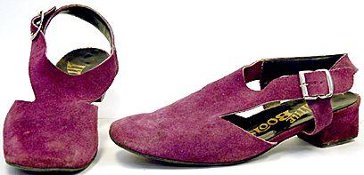 About MuseumFinland![]() | Materiaali: mokkanahka, nahka (vuori), tekonahka (sisäpohja) Valmistaja: Little Boots Valmistusaika: 1960 n. Käyttäjä: Elvi Kaukokallio Asiasana: JALKINEET, NAISEN KESÄJALKINEET Mitat: koko 5 Museokokoelma: LAHDEN HISTORIALLINEN MUSEO Vastuumuseo: LAHDEN KAUPUNGINMUSEO Asiasanasto: Lahden kaupunginmuseon sanasto Esineen numero: LKM:LHM:LHM:ES:93004:58 ID: 9300458 Naisen avonaiset sandaalit, joissa kärki umpinainen, kulmista pyöristetty tylppä. Kanta matala, palikkamainen. Edestä lähtevät remmit, joista toinen kiertää kannan takaa. Kiinnitys sivulta soljella. Sisäpohja tekonahkaa. Pohja muovia. Esinetyyppi: